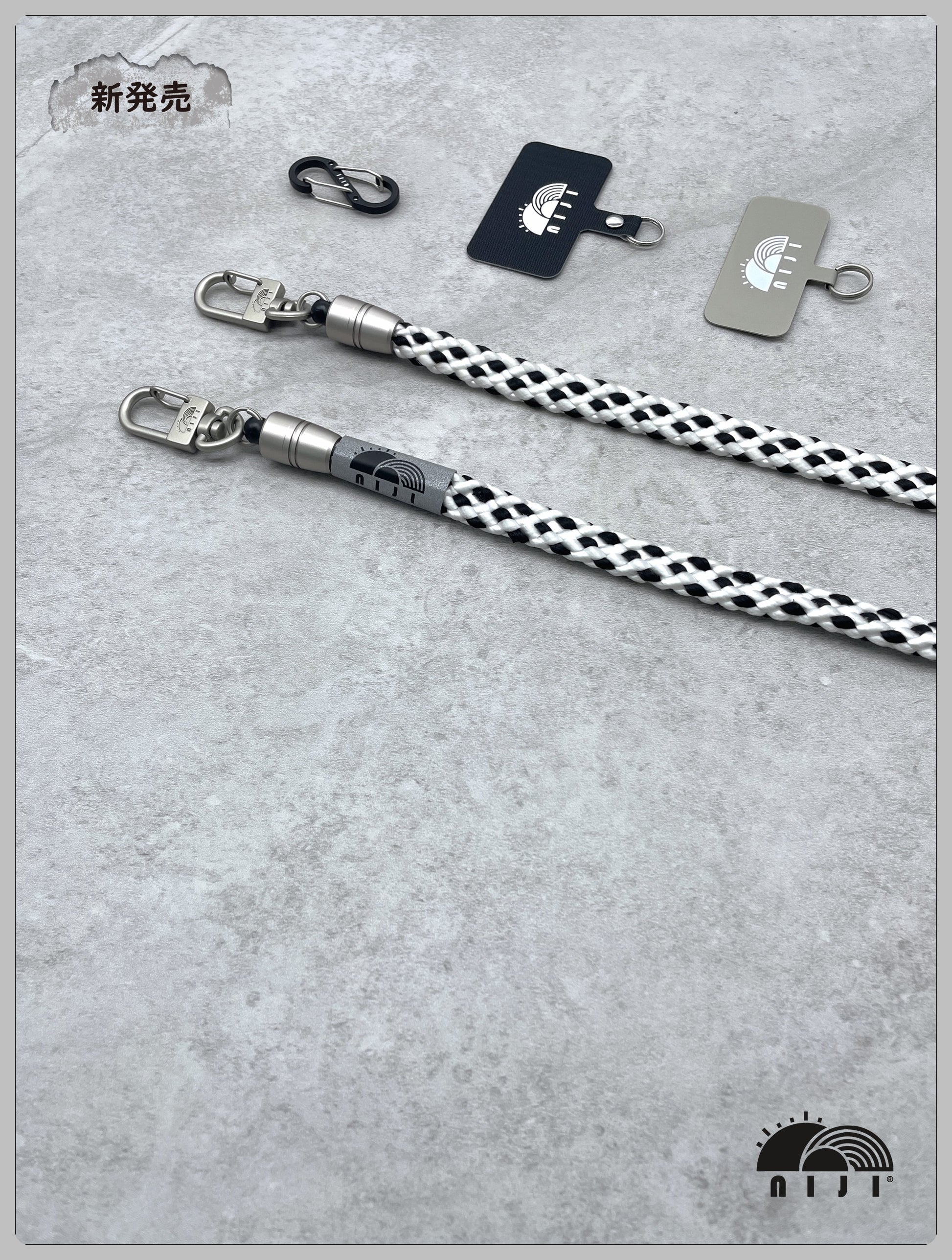 12mm Coreless mobile strap Black & white diamond pattern