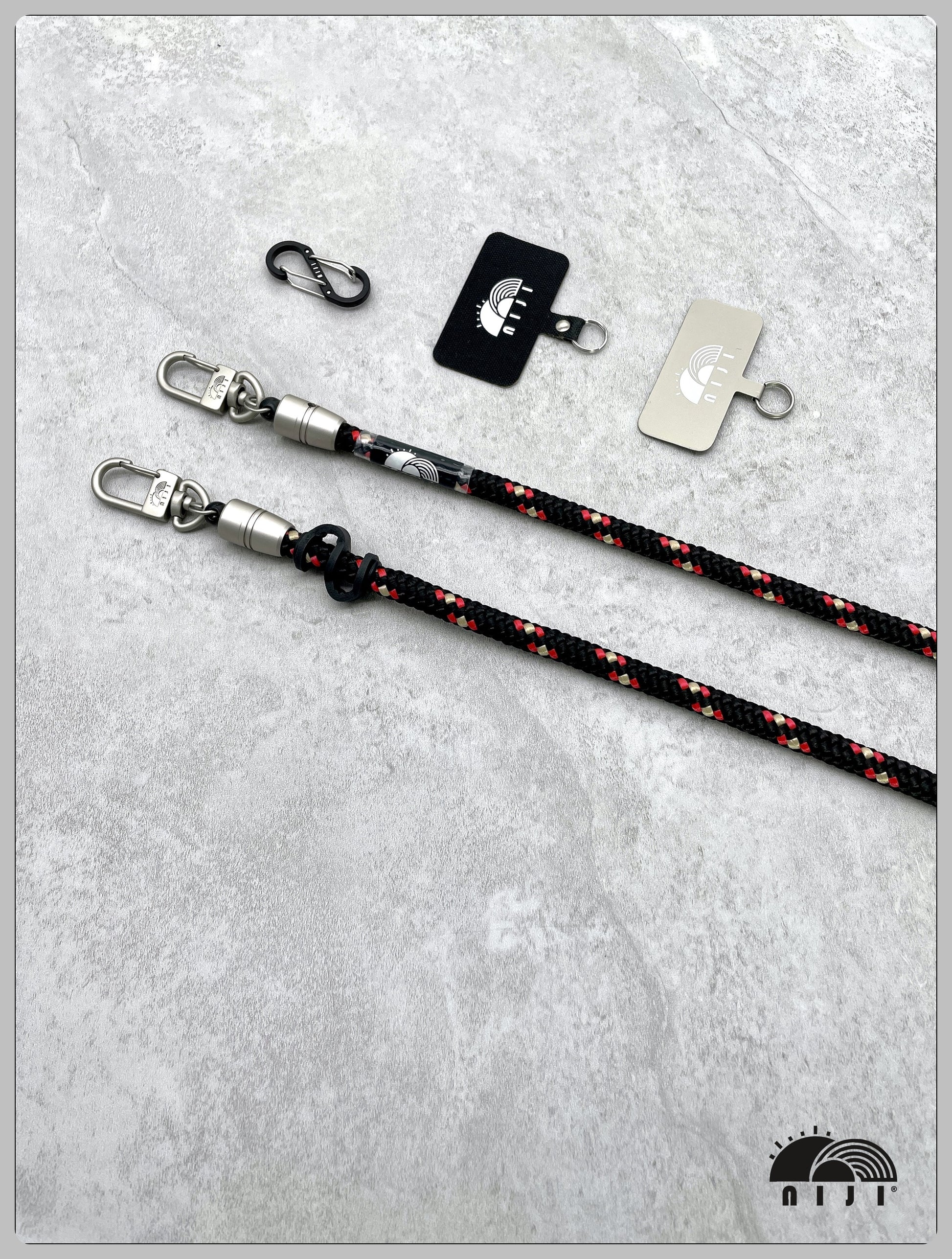 * Strap 1pc / Fabric tag 1pc / Metal tag 1pc / Matte black Metal hook.