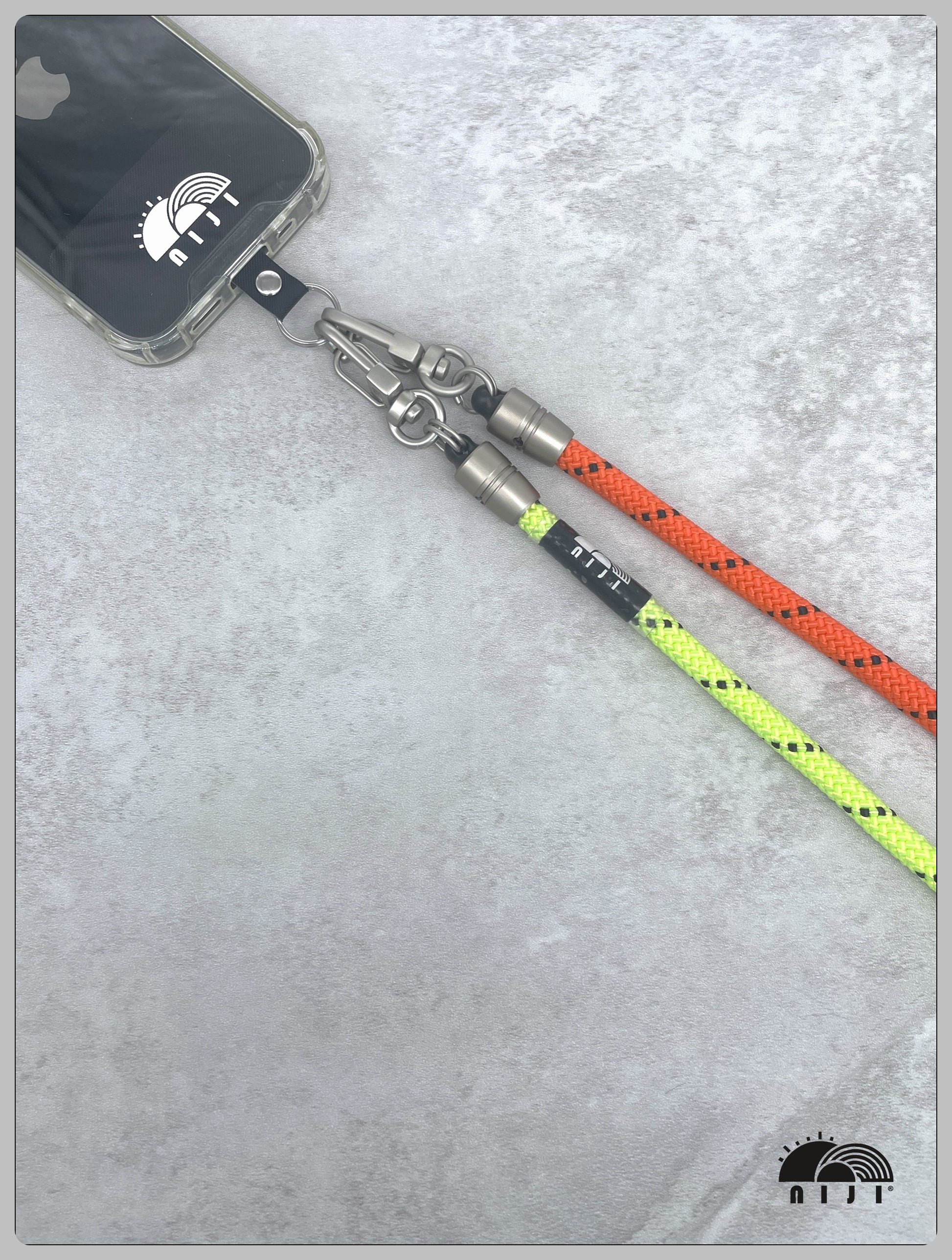 "AW24 NEW COLLECTION" Two tonal crossbody mobile strap 7mm Orange w black tracer / Neon green w black tracer
